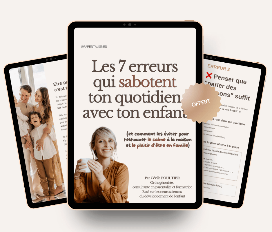 Maman de 2 enfants, fondatrice de Parentalignés, orthophoniste et consultante en parentalité, j'accompagne les parents à sortir du cercle des cris et de la culpabilité, et à retrouver le calme, la joie et la complicité avec leurs enfants.